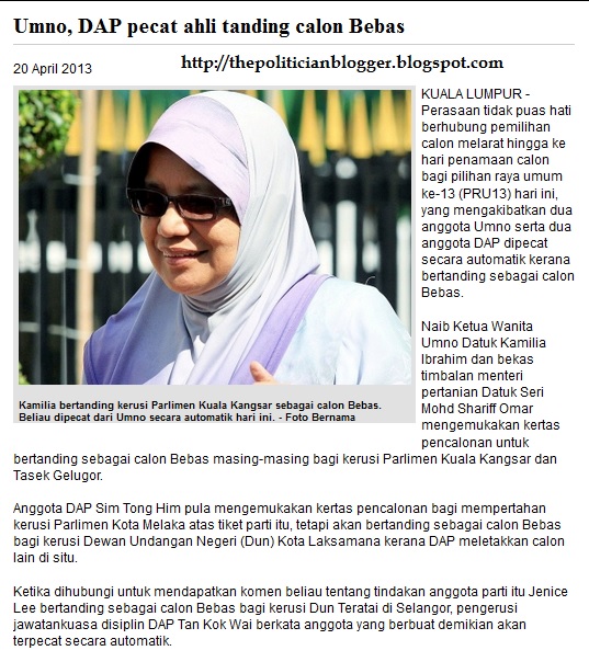 Untuk penulisan yang lebih lanjut, dapatkan Sinar Harian bertarikh 11 September 2013 atau terus sahaja klik di www.sinarharian.com.my